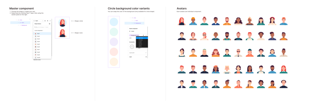 • If you are using Figma file: Import the Figma file and benefit from pre-set component settings. You can play with different background colors and shapes. Feel free to adjust or add more variants for your specific needs!
